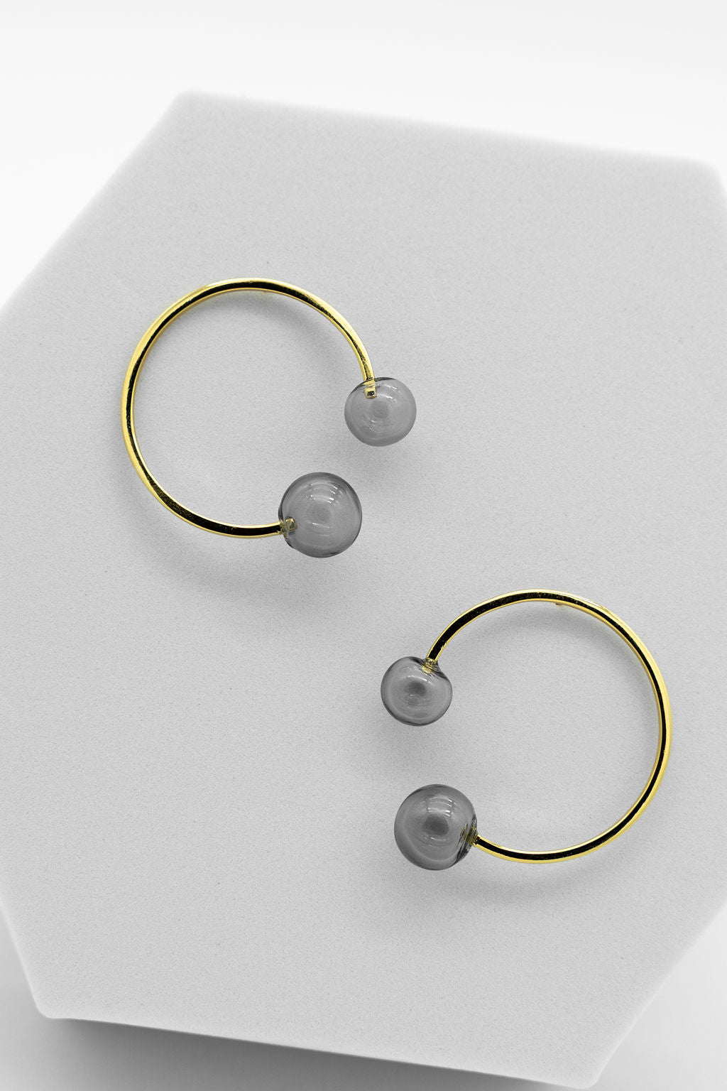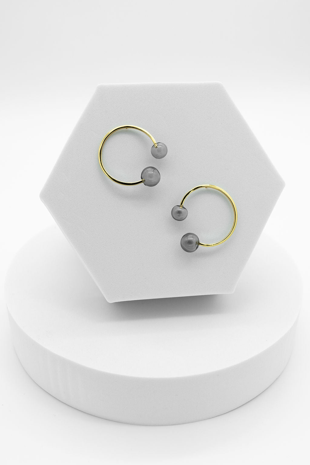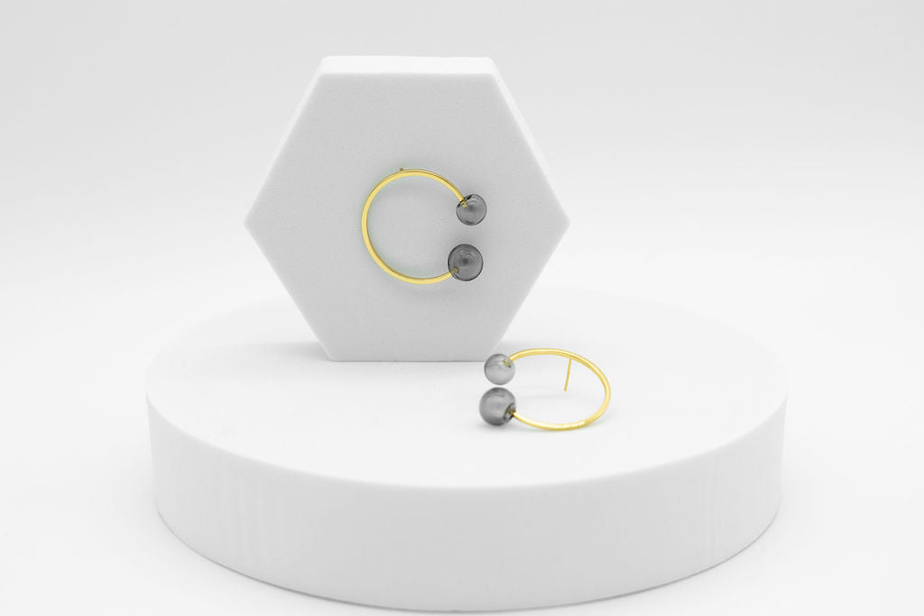 Elevate your style with the Grey Water earrings from our Wave Collection. These modern circle studs feature a distinctive grey glass centerpiece, combining minimalist design with a unique artistic flair. Perfect for those who appreciate contemporary elegance, these earrings add subtle sophistication to any outfit while showcasing craftsmanship and innovation. Ideal for daily wear or special occasions, they effortlessly complement a variety of looks with their sleek, timeless appeal.